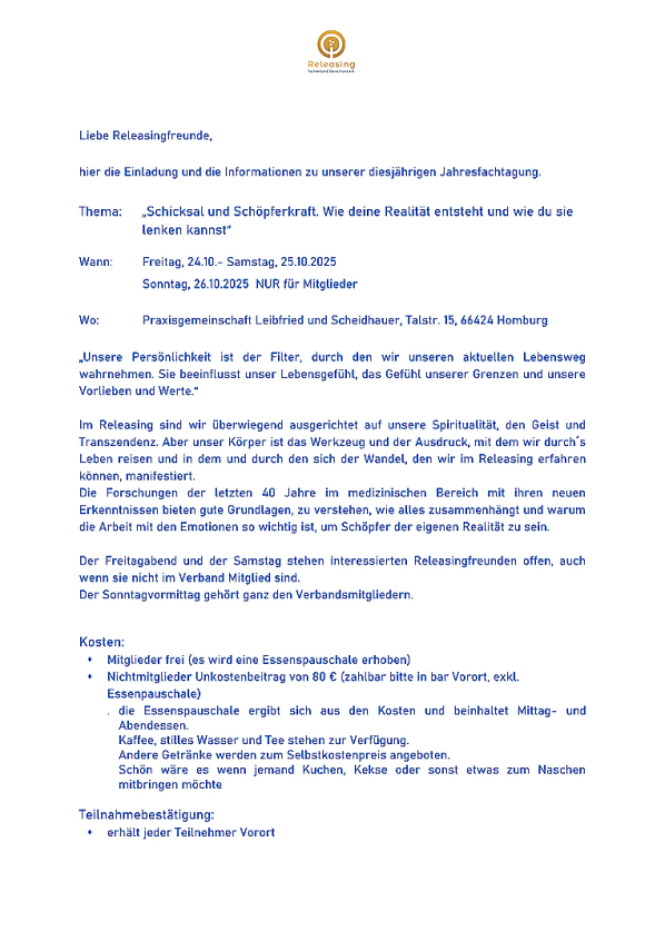 Mit der Lindwall Releasing-Methode arbeite ich seit 1991 zuerst nur in Form von Einzelsitzungen. Seit 1995 biete ich diese Arbeit auch in Form von Workshops an.