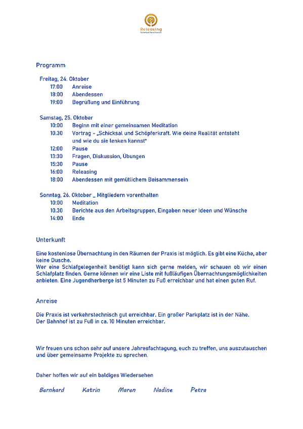 Wir wollen uns an diesem Wochenende mit dem Thema Loslassen & Vertrauen befassen,